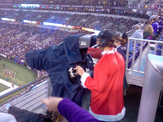 And a very cool Ravens fan / Santa who was such a good guy that he deserved better. He was such a solid fan that he was one of the few Ravens fans to stay to the bitter end. And what did he get? Two garbage-time touchdowns scored against his team. Here he is taking a beard break: